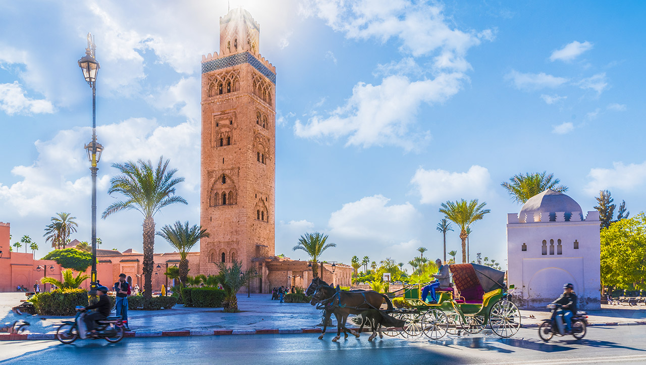 Begin u dag in Marrakech met een ritje per paardenkoetsje naar de Jardin Majorelle, een tropische tuin, gecreeerd in 1924 door de Franse kunstenaar Jacques Majorelle. De paarsblauwe villa in de tuin kleurt prachtig tussen alle tropische planten die in enorme kruiken en potten geplant zijn, alles is goed afgestemd qua kleur. De planten die er groeien zijn mooi, vooral het gedeelte met de hoge cactussen. In het in de tuin liggende museum wordt de Marokko-collectie van Majorelle inclusief zijn eigen werken tentoongesteld. De tuin is eigendom van de legendarische fashiondesigner Yves Saint Laurent, hij is tevens begraven in Marrakech, die een huis vlakbij heeft. Veel van deze prachtige tuinen zijn open voor publiek.